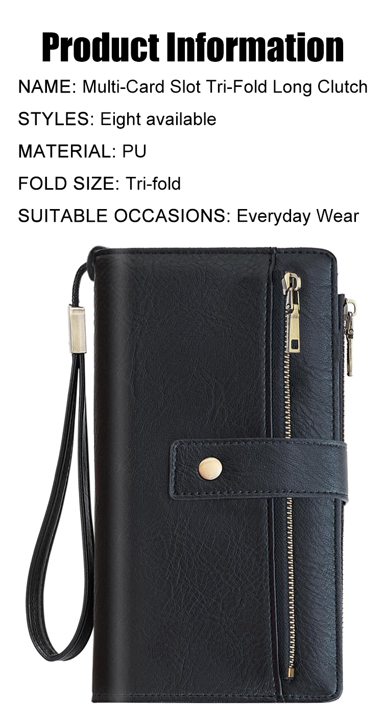 Multi-slot tri-fold long clutch